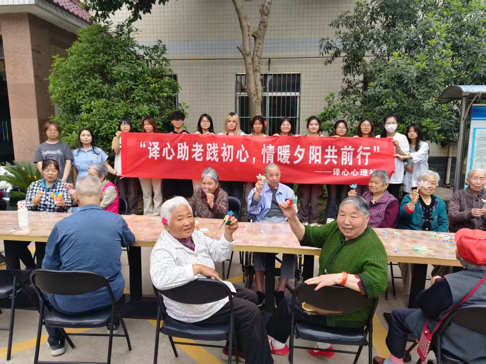 2025年4月26日,我院译心心理社副社长刘晓蕊、尹一雯带领14名社团志愿者前往芷阳湖养老院开展“译心敬老践初心,情暖夕阳共前行”敬老志愿服务活动,用专业与热忱为长者送去夏日关怀。活动中,志愿者们化身“银发天使”,先细致打扫起居环境,后精心组织纸杯叠叠乐竞赛和扭扭棒手工课堂。八十岁的李奶奶捧着自制的扭扭棒向日葵笑着说:“这些孩子教得比亲孙女还有耐心!”活动现场欢声不断,老人们在志愿者一对一陪伴下完成的手...