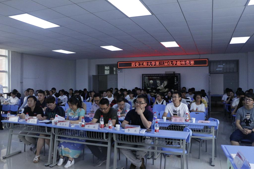 6月14日14:30,由js金沙3983总站校团委主办,js金沙3983总站团总支、化学趣味协会承办的js金沙3983总站第三届化学趣味竞赛在我校临潼校区人文楼214举行。校团委书记王晓先、纺织与材料学院学工办主任赵勇进、环化学院党委副书记袁群等老师参加了比赛。评委老师由环化学院侯海云教授、刘斌副教授、杜燕萍、李庆、朱炜老师担任。纺织学院、机电学院、电信学院、环化学院、理学院的五支代表队参与了本次比赛。