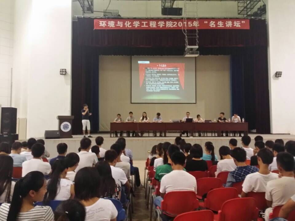 学院于2015年6月12日中午12:30在临潼校区大学生活动中心举办了名生讲坛活动。林定武老师、8名环化学院11级优秀大学生及环化学院13、14级全体同学参加了本次活动。由林定武老师主持本次活动。